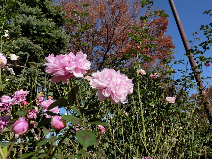 こんな季節でもぽつりぽつりと咲くバラ。5月ごろならもっと綺麗だったろうなあ!